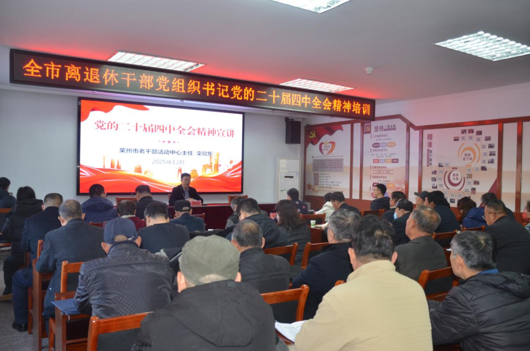 近日,莱州市举办党的二十届四中全会精神培训班,全市离退休干部党组织书记、“不忘初心 红色记忆”老干部宣讲团骨干及老干部工作者等120余人齐聚一堂,共学全会精神、凝聚银发力量、共谋发展蓝图。
